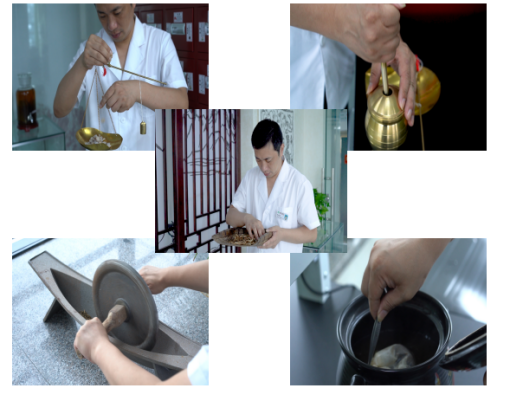 李韶陽(第六代)炮制過程(稱量、碾碎、磨、曬、熬制)