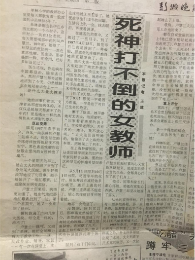1987年3月《彭城晚報》報道李法運(第五代)治療婦科惡性腫瘤